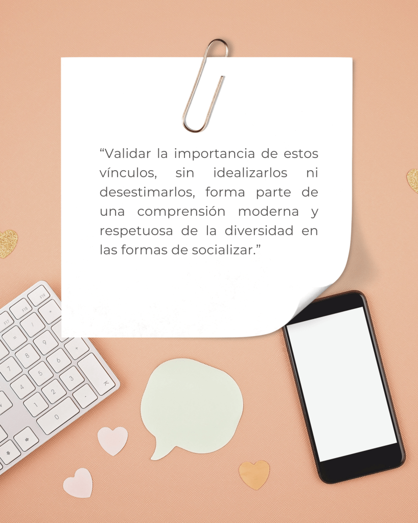 Validar la importancia de estos vínculos, sin idealizarlos ni desestimarlos, forma parte de una comprensión moderna y respetuosa de la diversidad en las formas de socializar.